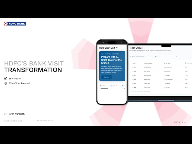 Redesign the HDFC branch visit experience to reduce in-branch time and visit-related uncertainty, strengthen authentication, and eliminate physical ID dependency within 12 weeks, using AI-based smart scheduling and secure digital identity verification